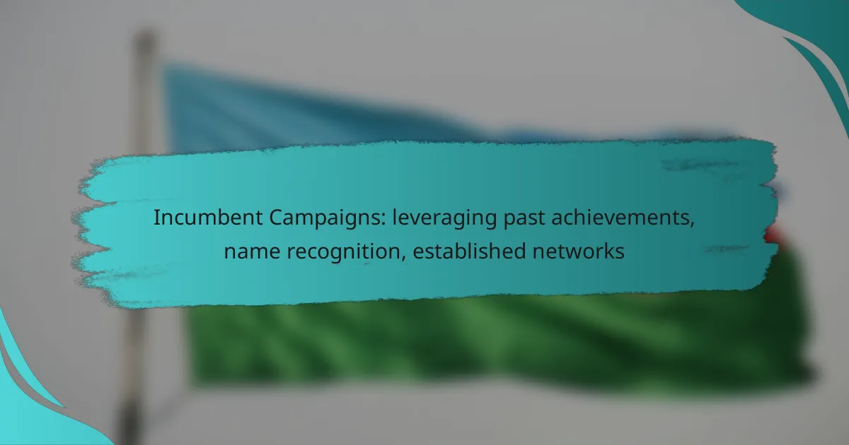 Incumbent campaigns thrive on the strategic use of past achievements, which highlight successful policies and community impact, thereby reinforcing candidate credibility. Name recognition plays a pivotal role, as familiarity can foster trust and increase voter support. Additionally, established networks enhance campaign effectiveness by providing vital resources and connections, facilitating mobilization and fundraising efforts essential for electoral success.